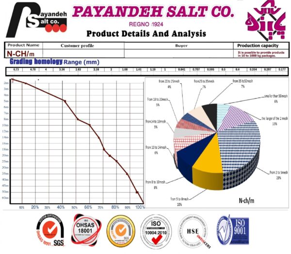 در گروه کارخانجات نمک پاینده  این نوع نمک که  زیر شاخه گروه محصولات نمک های N-CH میباشد  کد N-CHm اختصتص داده شده است